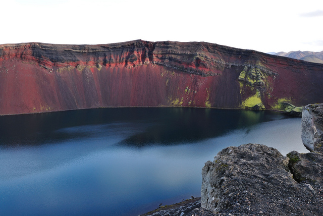 Para finalizar la visita al parque, vimos el cráter de Ljotipolur, por la F224 hacia el norte y a la derecha por la F225 hasta llegar. ¡Esta ultima carretera se las trae! El cráter también tiene un lago en su núcleo pero esta vez las paredes tienen una tonalidad rojiza.