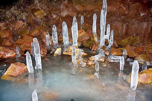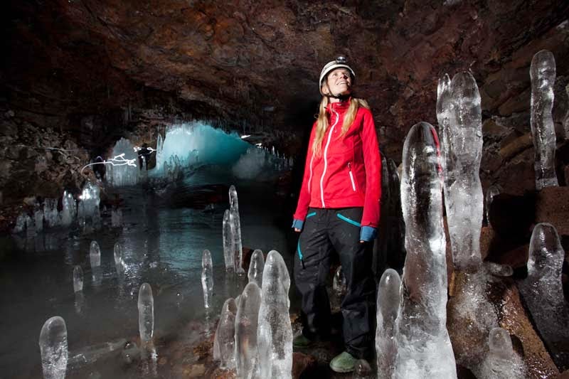 Desde aquí tendrás que caminar unos 20 minutos a través de un campo de lava, con rocas de forma inusual hasta que llegues a un agujero en el suelo que reconocerás en la distancia porque un montón de piedras permanece a su lado para marcarlo, Lofthellir. En la boca de la cueva encontrarás una escalera de metálica que se utiliza para entrar a la misma. Si eres claustrofóbico, entonces esto no es para ti, pero si no es así, sin duda esta es tu aventura.