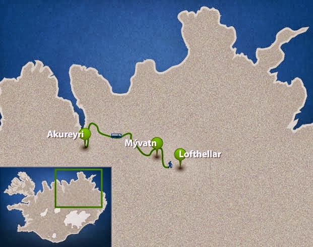 Para llegar a la cueva, tardarás unos 50 minutos desde el lago Mývatn (30 en coche y 20 caminando). Con un 4×4 y saliendo desde Reykjahlið cruzarás el cono volcánico de Hverfell y pasando a través de Lúdentarborgir (alineación de conos estrombolianos en una fisura eruptiva) atravesarás la base del monte Hvannfell donde el vehículo ya no puede continuar…