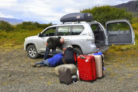 Vuelta. Hoy estaba previsto ir a Blue Lagoon, pero hemos ido a arreglar el pinchazo para no tener problemas al entregar el coche.