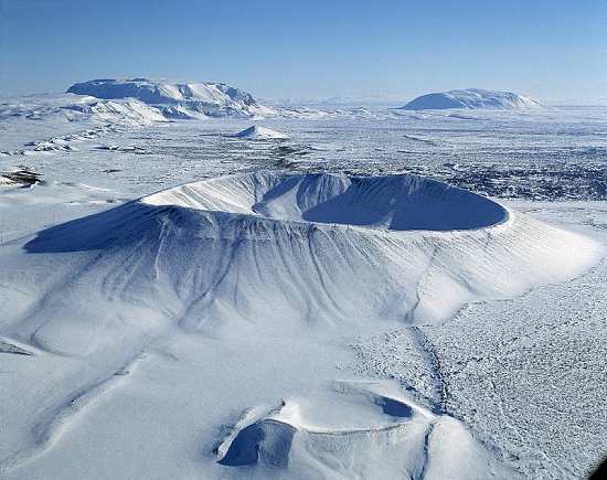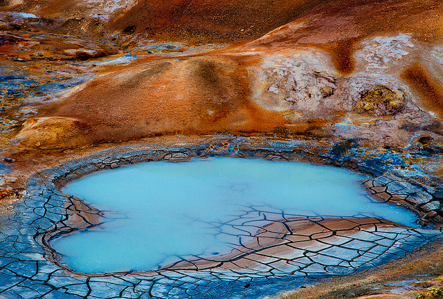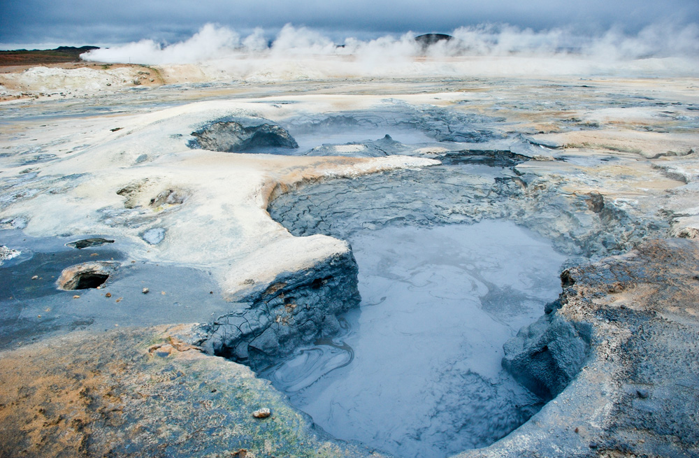 El pseudocráter de mayor tamaño alcanza 300 metros de diámetro, pero la mayoría de ellos apenas tiene una decena, e incluso menos. Precisamente estas formaciones espontáneas son el origen de los abundantes islotes con que cuenta el lago, si bien muchos han padecido un proceso de erosión tan severo que su típica silueta de cono achatado ya es absolutamente irreconocible. -Visita el área geotérmica Hverir en Námaskarð. Gases sulfurosos, rocas vestidas de colores minerales, fumarolas, cascadas y diversos elementos de gran interés geotérmico componen un espectacular paisaje conocido como ‘Gateway to Hell‘.