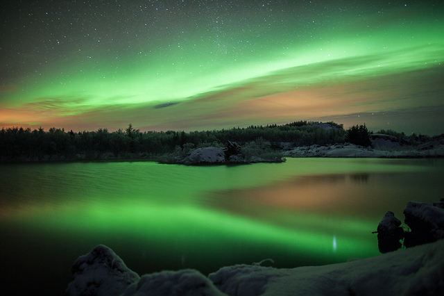 Ver Auroras Boreales (solamente posible durante el Invierno). Esta región es un destino perfecto para ver las conocidas Auroras Boreales. ¿Qué es la aurora boreal? El sol desprende partículas cargadas de mucha energía, iones, principalmente protones, y electrones, los cuales viajan por el espacio a velocidades entre 320 y 704 kilómetros por segundo, es decir, necesitan tan solo entre 130 y 60 horas en llegar a la Tierra. Al conjunto de partículas que vienen del Sol se les conoce como viento solar.