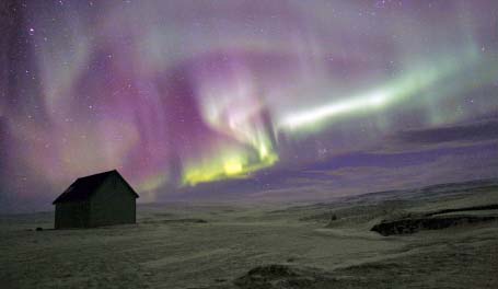 Cuando las mencionadas partículas chocan con los gases en la ionosfera, empiezan a brillar, produciendo el espectáculo que conocemos como aurora boreal (norte) y austral (sur). La variedad de colores, rojo, verde, azul y violeta que aparecen en el cielo se deben a los diferentes gases que componen la ionosfera. Podéis ver la predicción de auroras en el siguiente enlace: