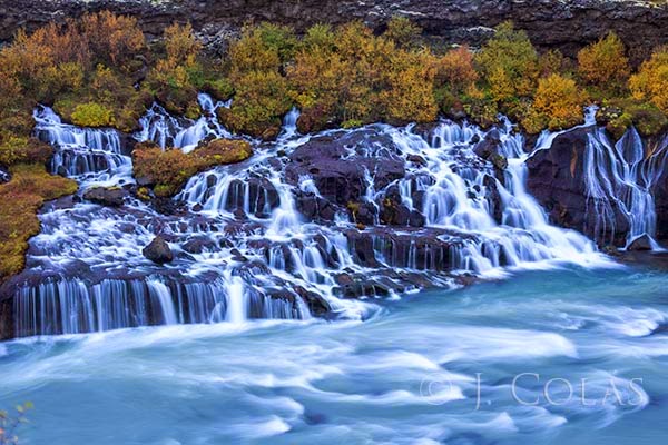 Por la tarde hicimos el avistamiento de ballenas a bordo de un barco en la bahía de Husavik. Las malas condiciones meteorológicas nos impidieron ver a los cetáceos así que nos invitaron a volver al día siguiente gratis. Y así lo hicimos, con más suerte esta vez. Repetir el avistamiento de ballenas nos hizo perder tiempo. Así que fuimos directos hasta las bonitas cascadas de Hraunfossar, al otro lado casi de la isla, donde hicimos noche. En ese trayecto sólo hicimos parada en Akureyri y en un par de iglesias llamativas, una con el típico tejado de turba y otra con forma de volcán, pero la verdad, es la zona de Islandia que menos nos gustó. Una foto de Hraunfossar, otro de esos lugares sorprendentes y únicos de Islandia.